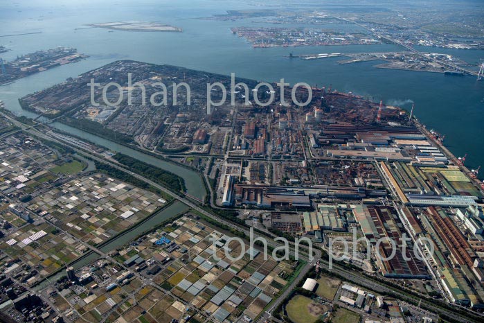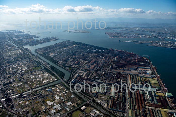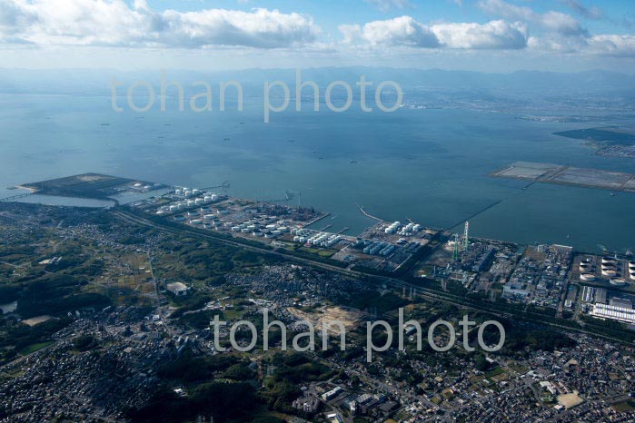 中京工業地帯(北浜地区のタンク群,工場)より伊勢湾,名古屋港(2020/10)