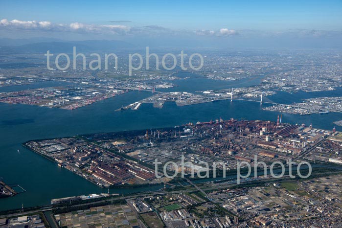 中京工業地帯(東海地区の工場群)と伊勢湾,名古屋港(2020/10)