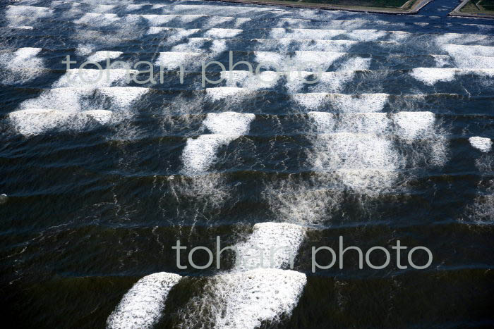 台風翌日の九十九里浜の波のうねり模様と九十九里平野(匝瑳市吉崎付近)(2021/10)