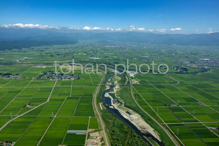 会津盆地(河沼郡阿賀川,日橋川合流地区より会津坂下方面)(2023728)