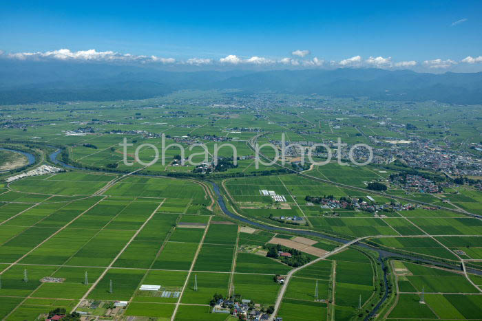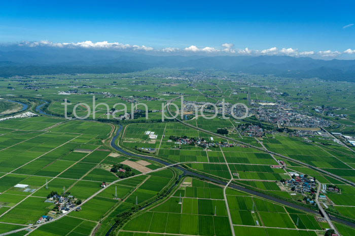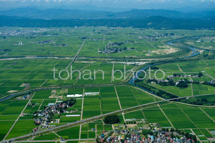 会津盆地(河沼郡阿賀川,日橋川合流地区より喜多方方面)(2023728)