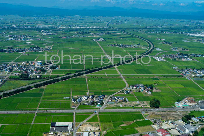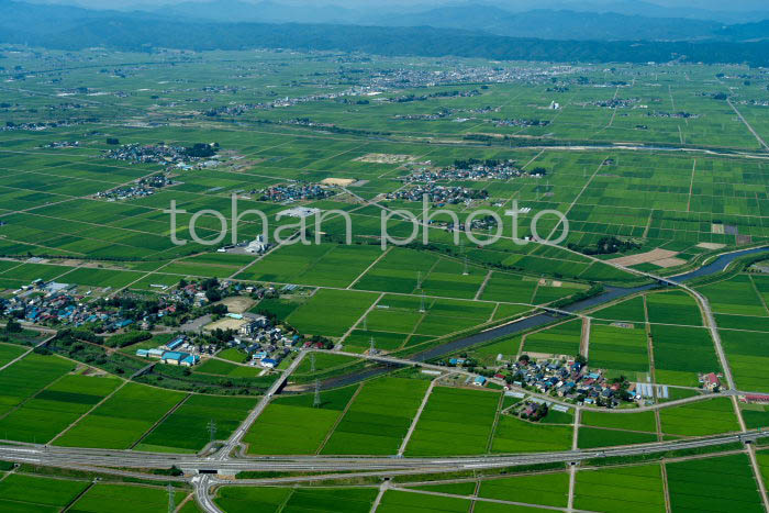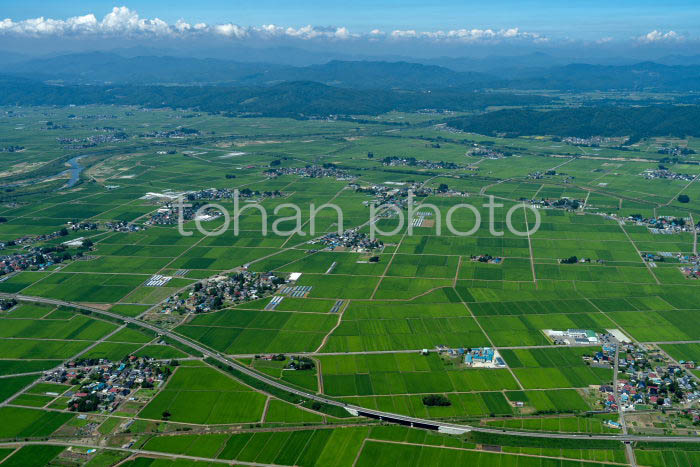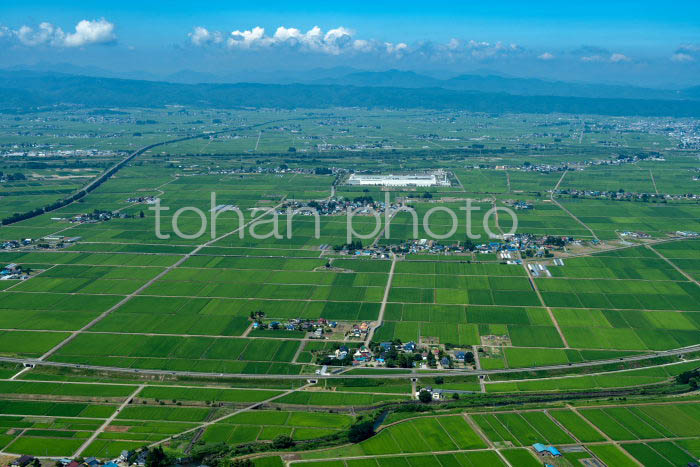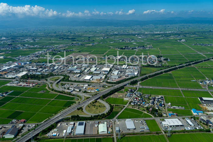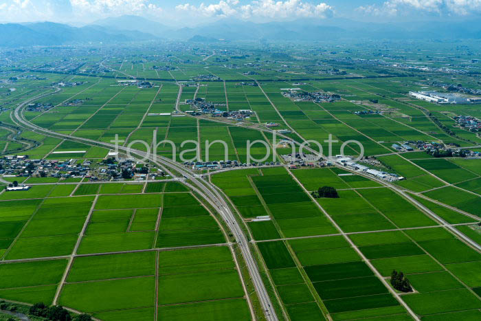 会津若松IC(磐越自動車道)と物流センター団地周辺より会津盆地(2023728)