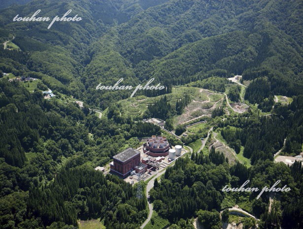 柳津西山地熱発電所と施設(2012/8)