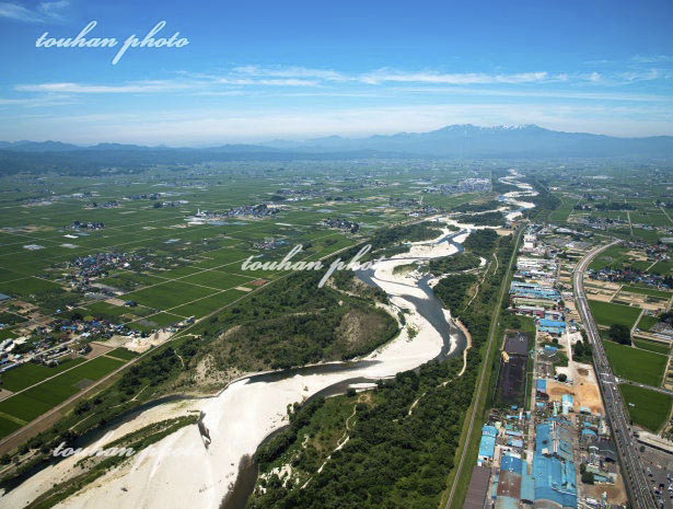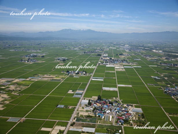 会津盆地(北会津,阿賀川より飯豊連山方面)(2012/8)