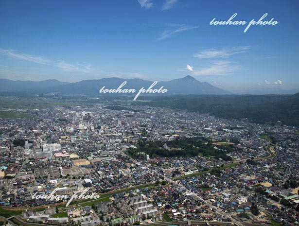 西若松,鶴ヶ城周辺より磐梯山方面(2012/8)