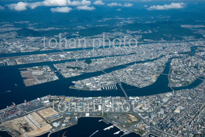 大竹港と大竹市街地(小瀬川河口)(2018/10)