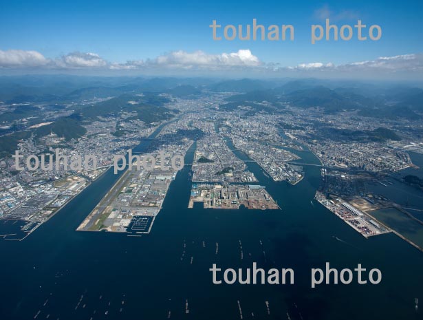呉港と呉市街地(新広駅,安芸阿賀駅,広駅)周辺より広島市街地方面(2018/10)