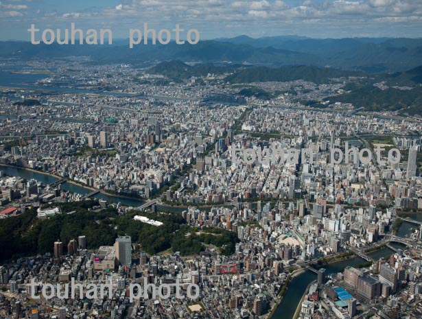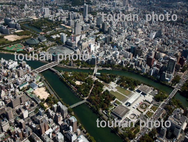 平和記念公園と原爆ドームより広島中心地周辺(2013/9)