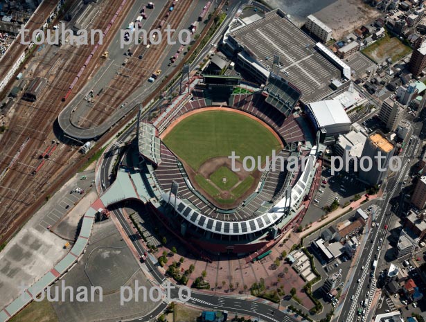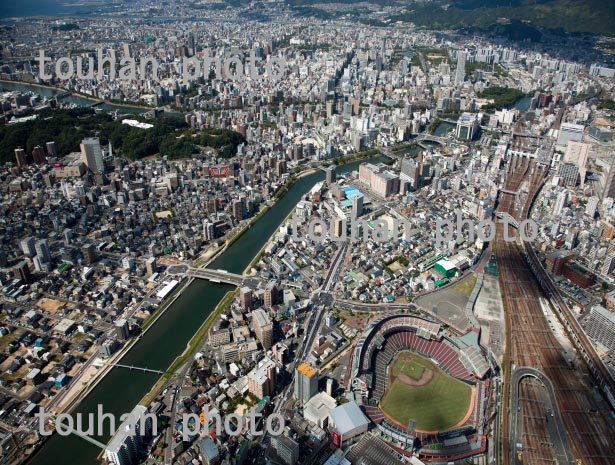 マツダスタジアム(広島市民球場)と広島駅周辺より広島市街地(2013/9)