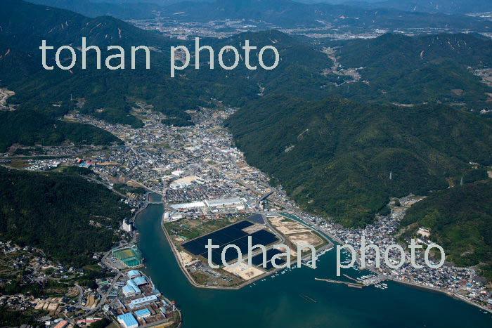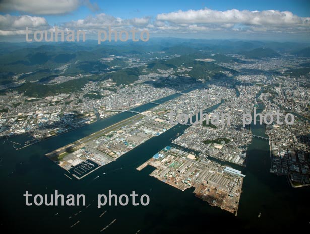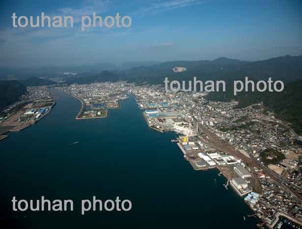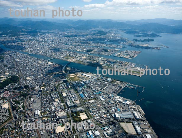 三原市街地と三原駅(尾道糸崎港より三原港と沼田川河口)(2013/10)