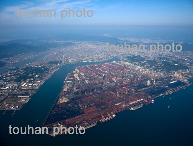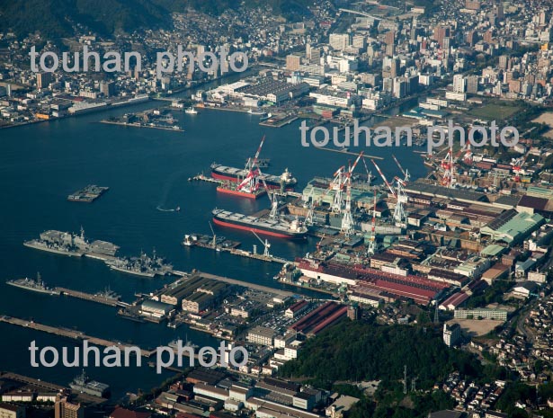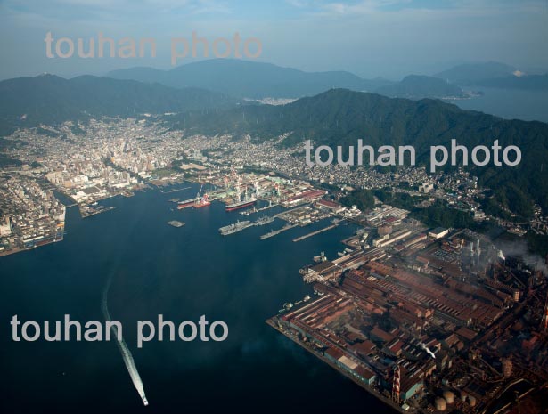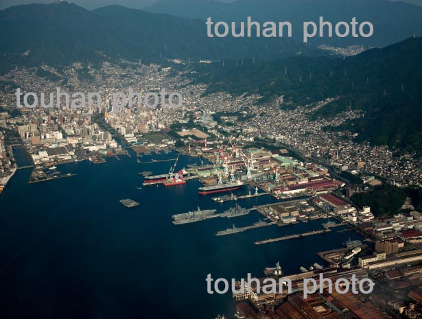 呉港と呉造船所(手前は日新製鋼の工場)より呉市街地(2013/10)