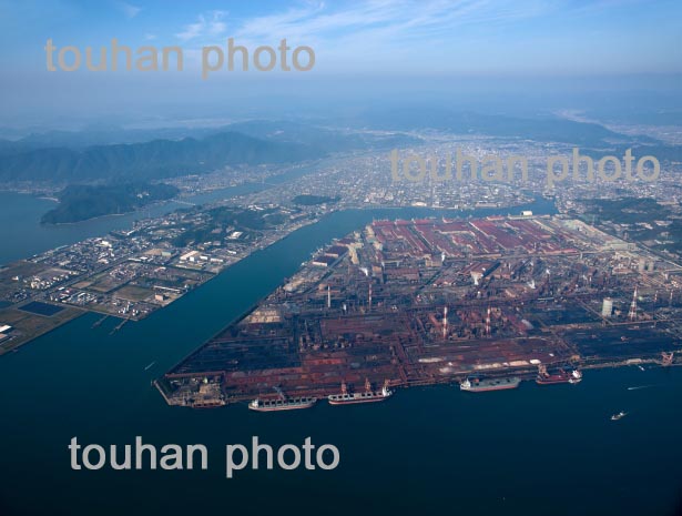箕沖町の工場群と福山港とJFEスチール工場(2013/10)