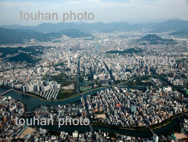 広島市街地(太田川より相生通り広島城,広島県庁,広島駅方面)(2013/10)