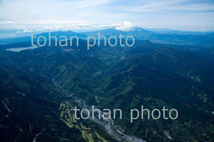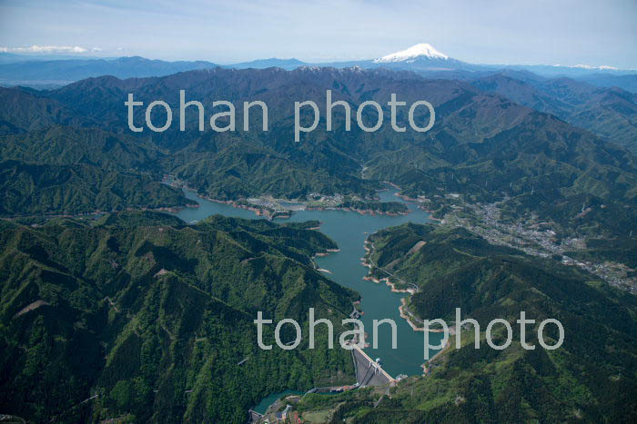 新緑の宮ケ瀬ダムと宮ケ瀬湖と丹沢山地と富士山(2019/4)