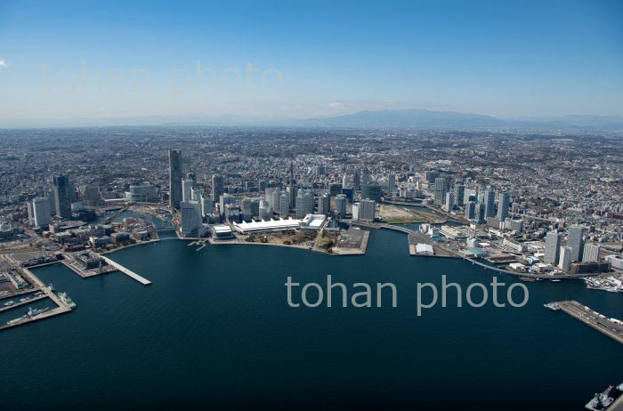 横浜港と山下公園周辺より横浜の街並みと富士山(2020/3)