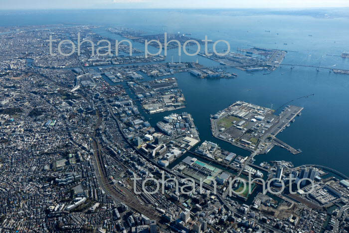 横浜港より新港埠頭と横浜の街並み(2020/3)