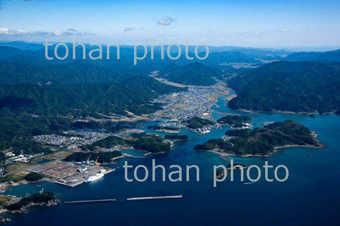 室津港(土佐湾)と室戸市の町並み(20231018)