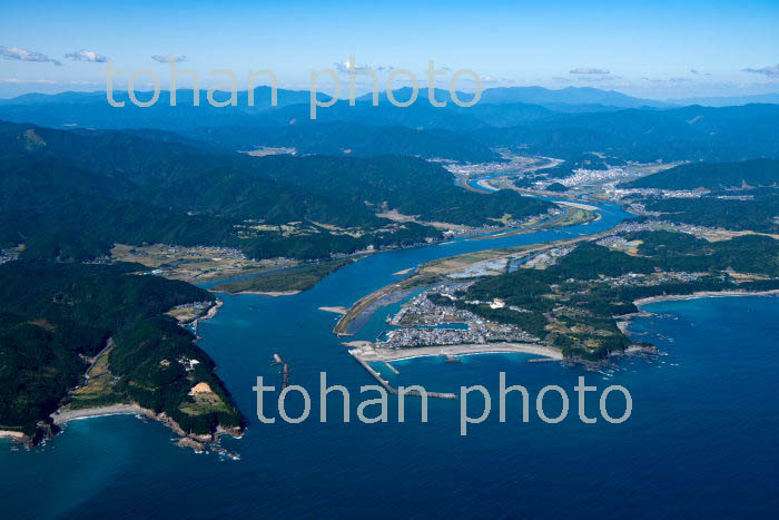 鹿島が浦,土佐湾より土佐佐賀の街並みと伊与木川河口(2018/10)