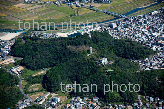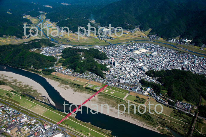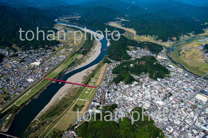 四万十市の街並みと中村城跡,四万十川橋,四万十川(2018/10)