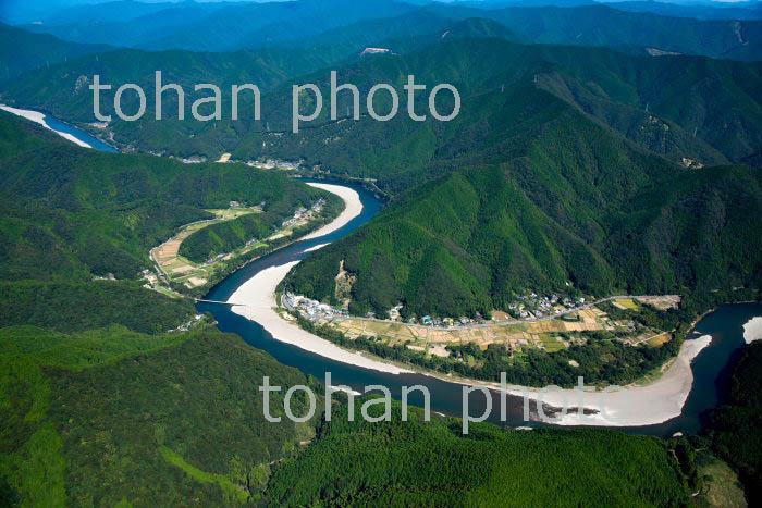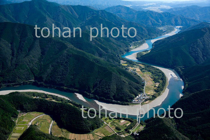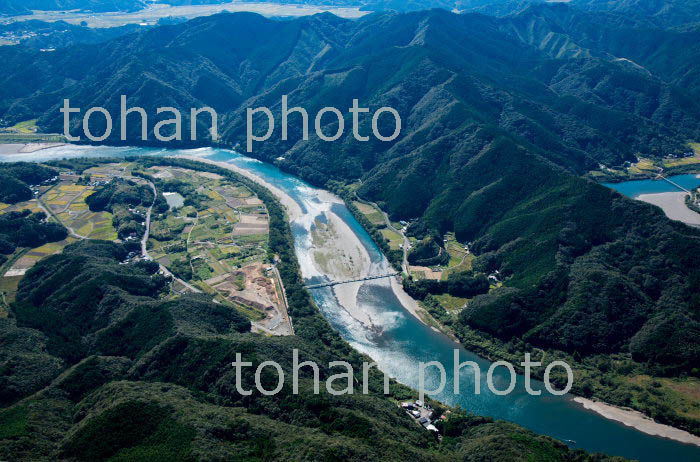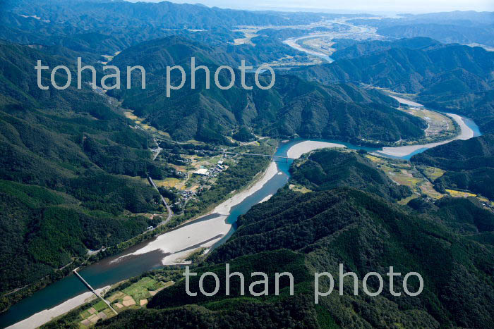 清流四万十川,勝間沈下橋付近より高瀬沈下橋と下流方面(2018/10)