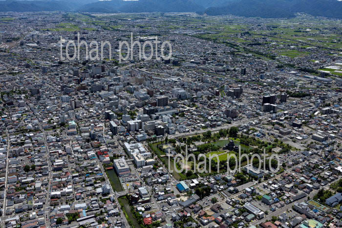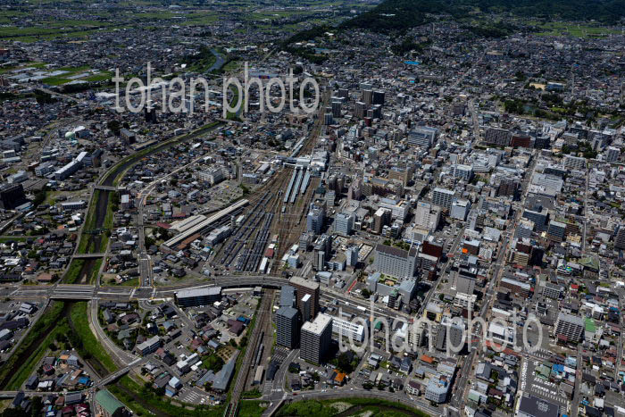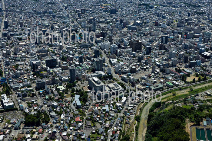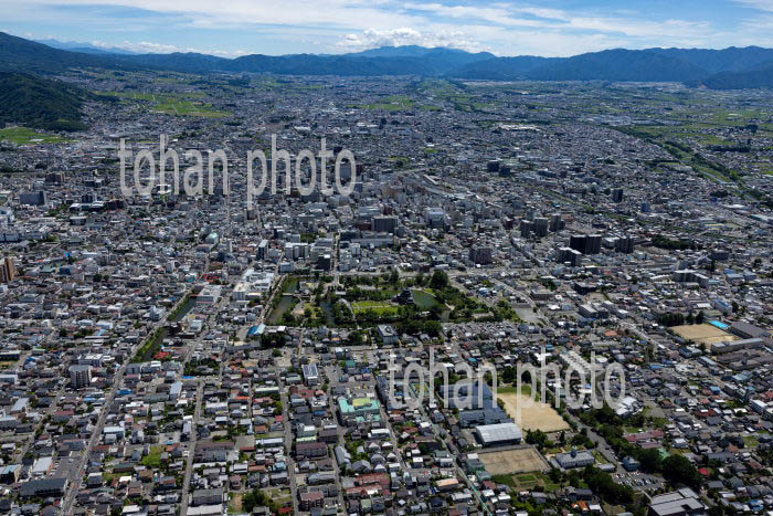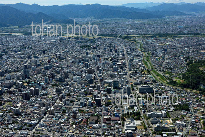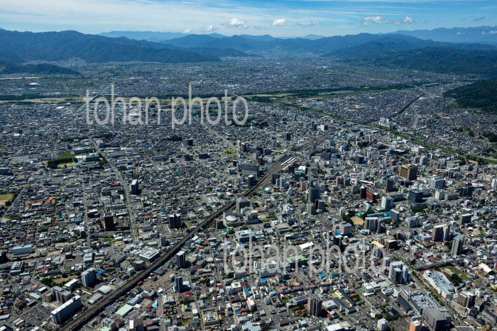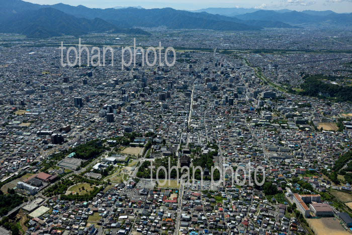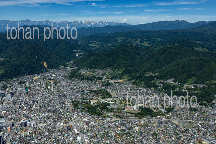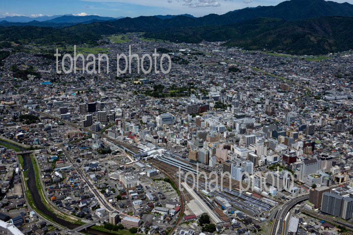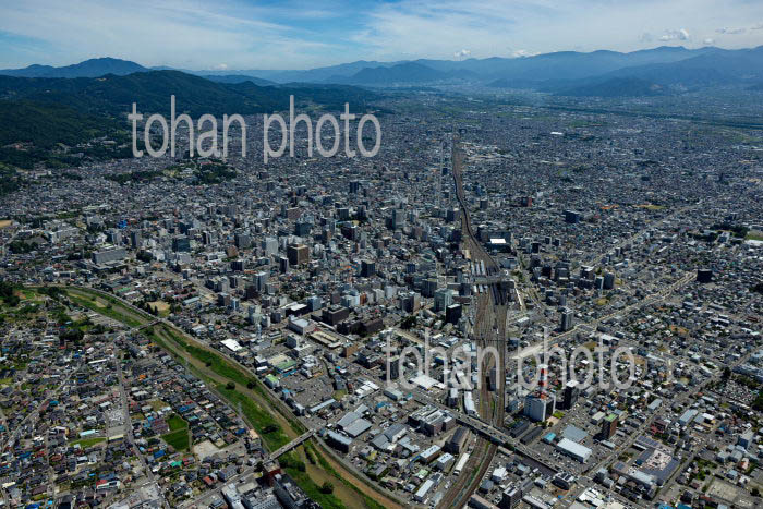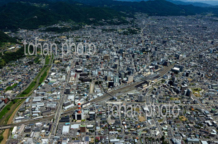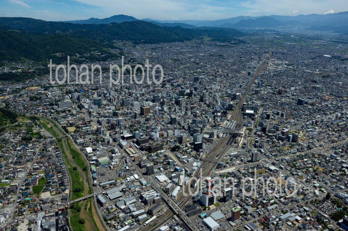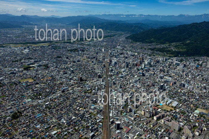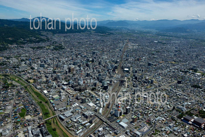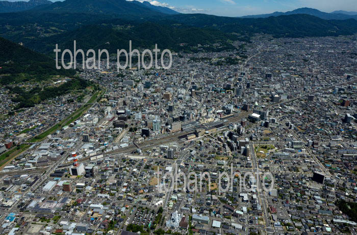 長野駅と周辺の街並みと長野盆地