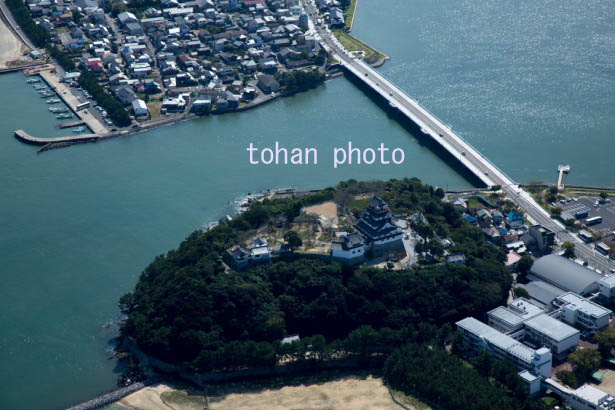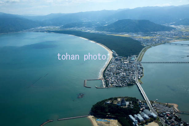 唐津城と松浦川河口周辺より虹の松原(日本三大松原,日本の渚百選,玄海国定公園)方面(2015/10)