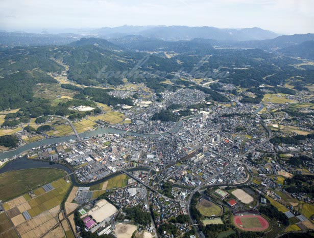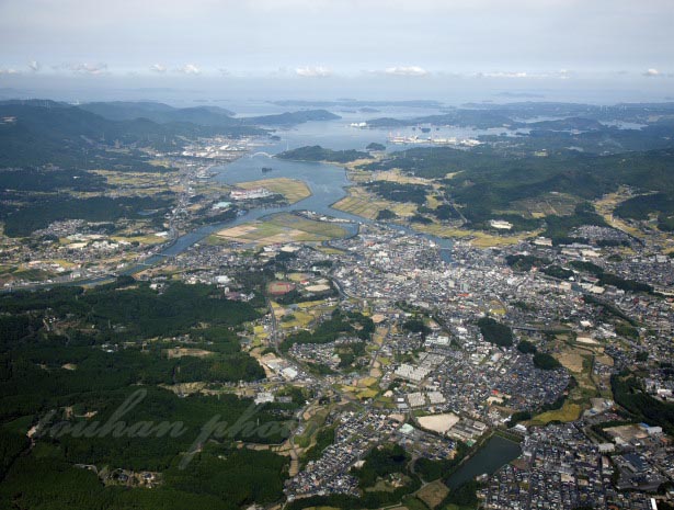 伊万里駅と伊万里市街地より伊万里湾(2012/10)