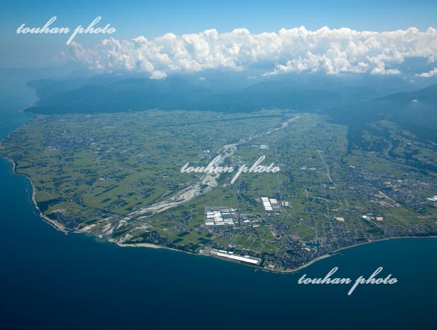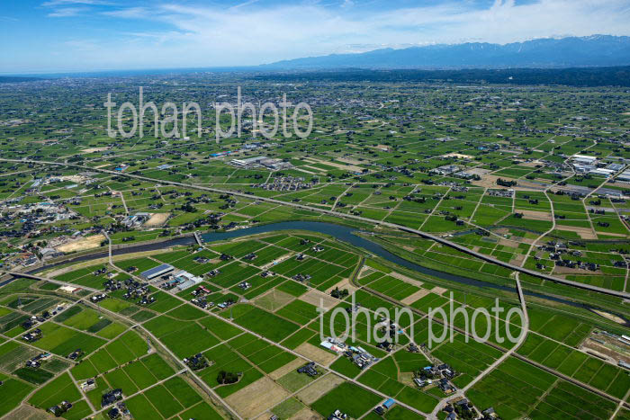 富山平野(神通川,楡原周辺より富山市街地と富山湾)