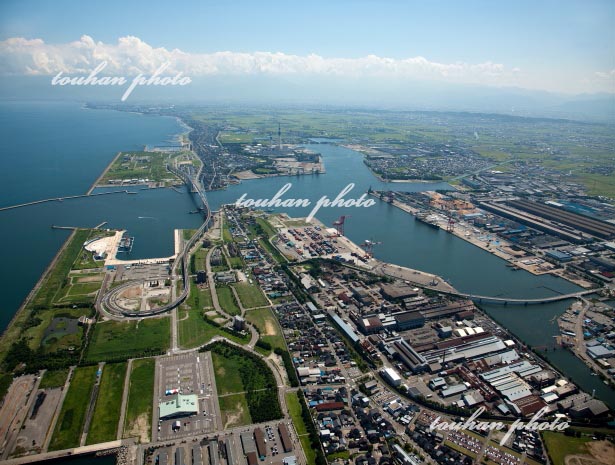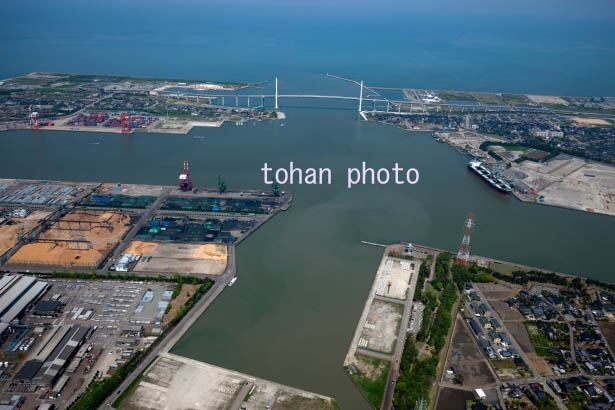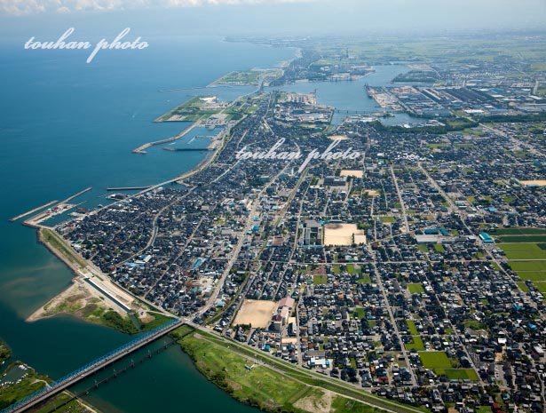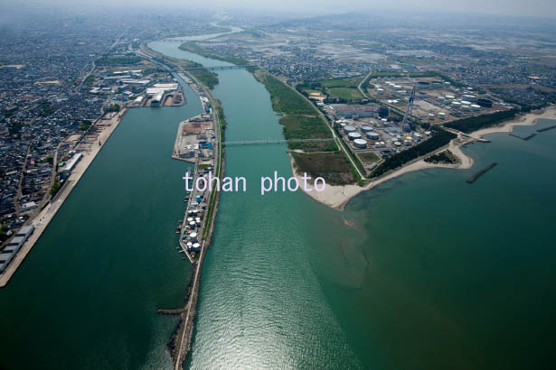 富山港より神通川河口と富山港,富山火力発電所周辺(2015/5)