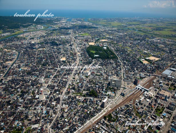 高岡駅より高岡市街地と高岡古城公園周辺(2012/8)