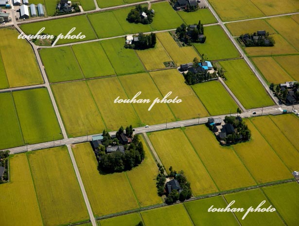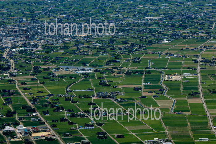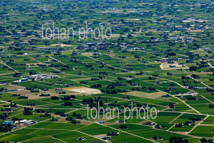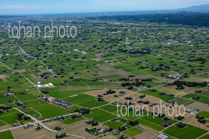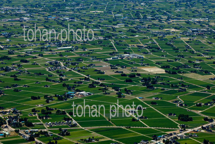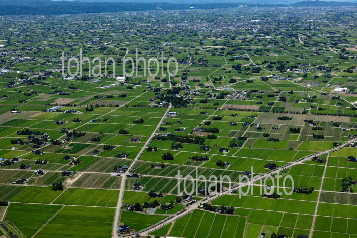 砺波平野の散村風景(安清,田屋地区より砺波の町方面)