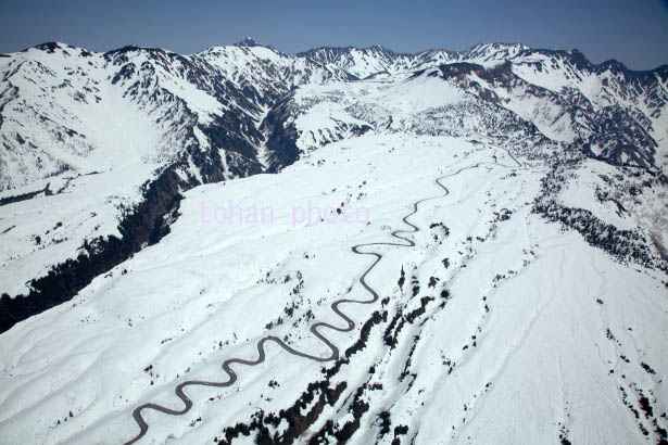 立山黒部アルペンルート(立山有料道路)弥陀ケ原周辺より室堂方面と観光バス(2015/5)