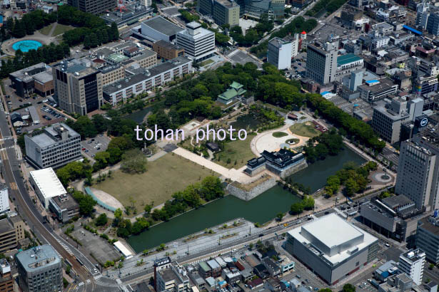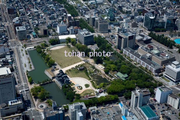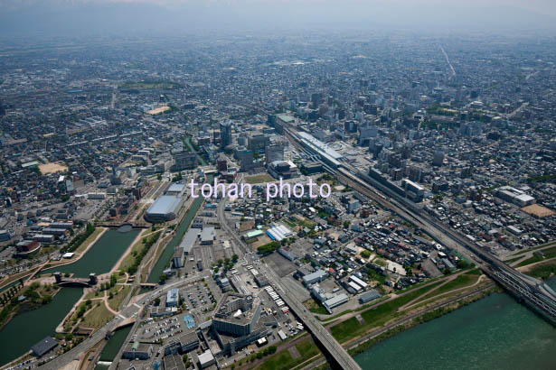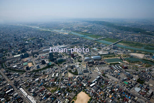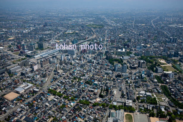 富山県富岩運河環水公園周辺より富山駅と富山市街地(2015/5)