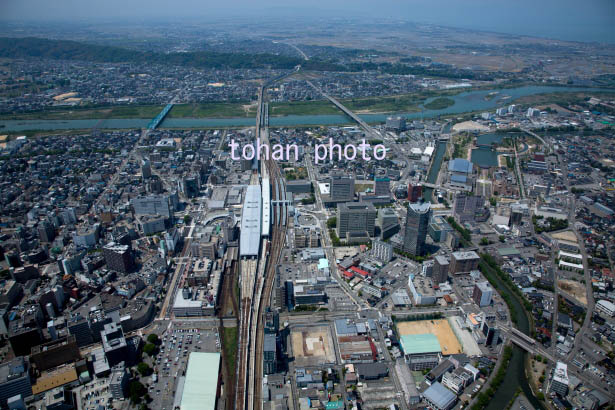 新高岡駅(北陸新幹線)と高岡駅と高岡市街地(2015/5)
