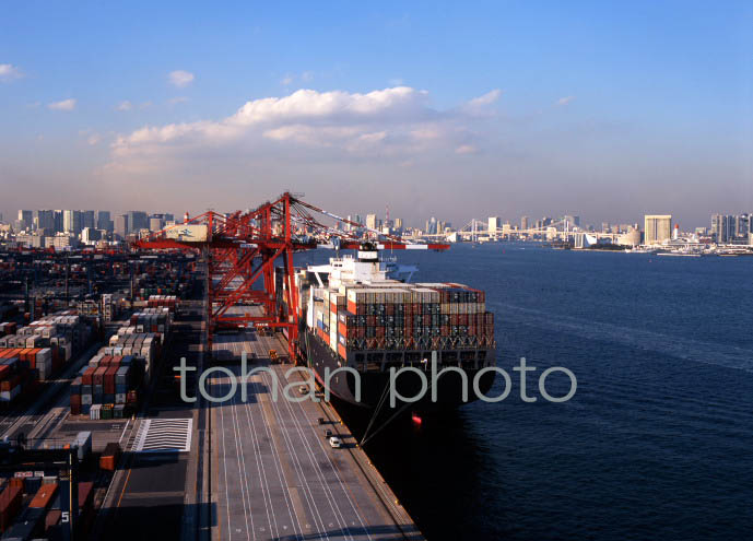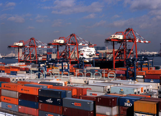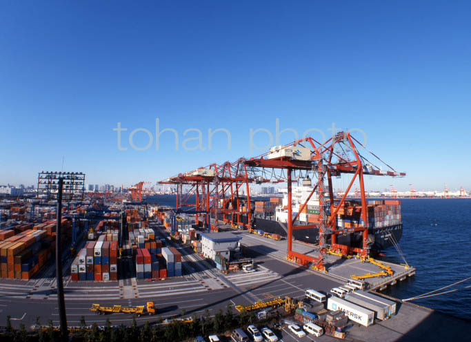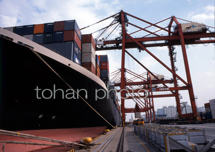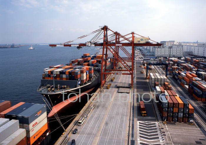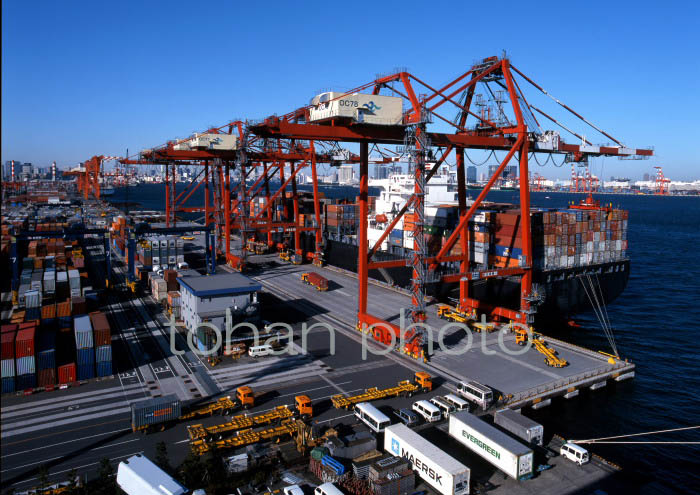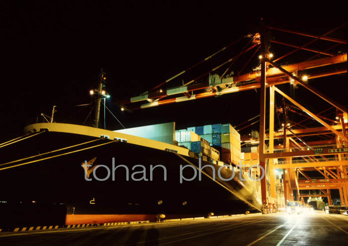 夜のコンテナ船とコンテナ(大井ふ頭)