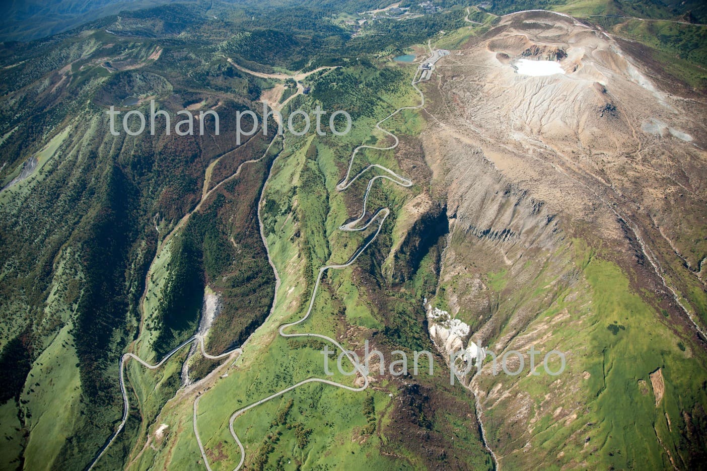 国道292号線と白根山と湯釜