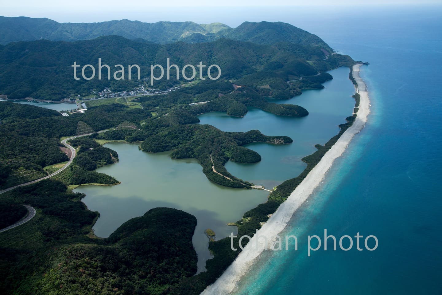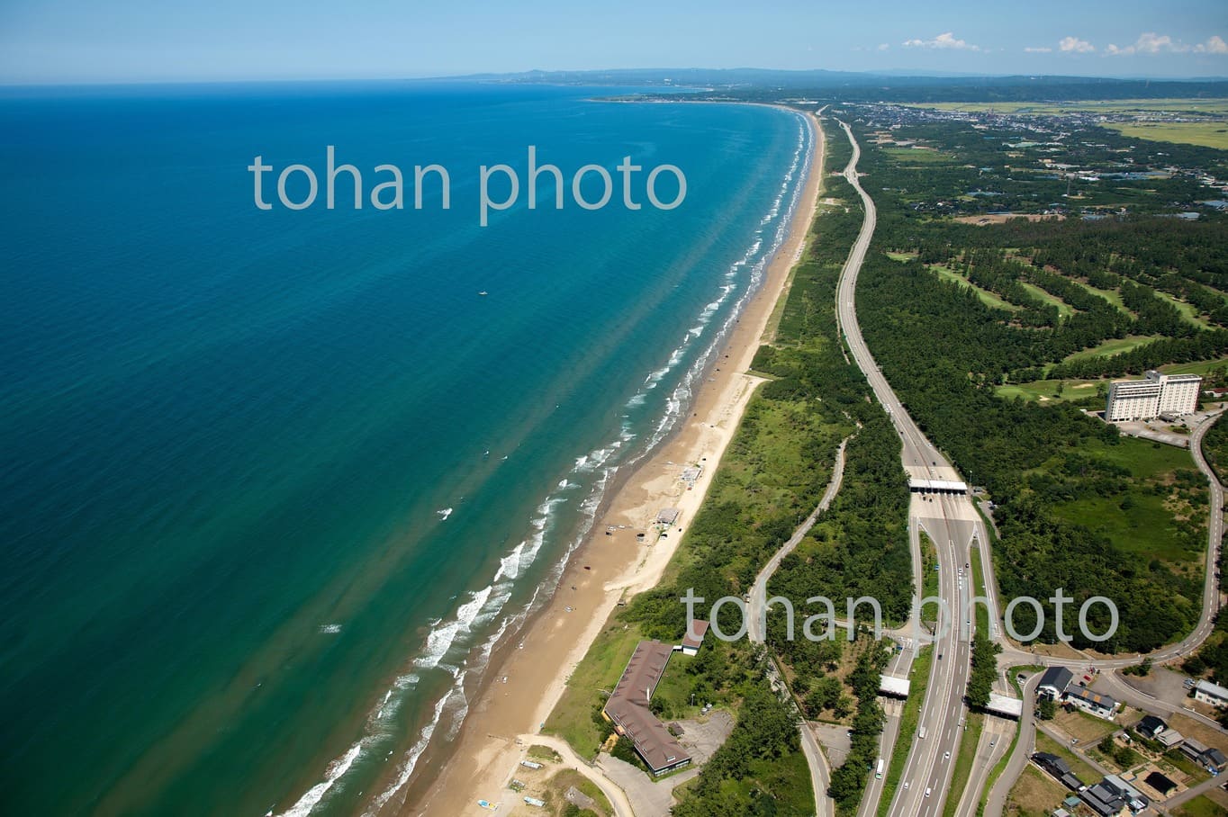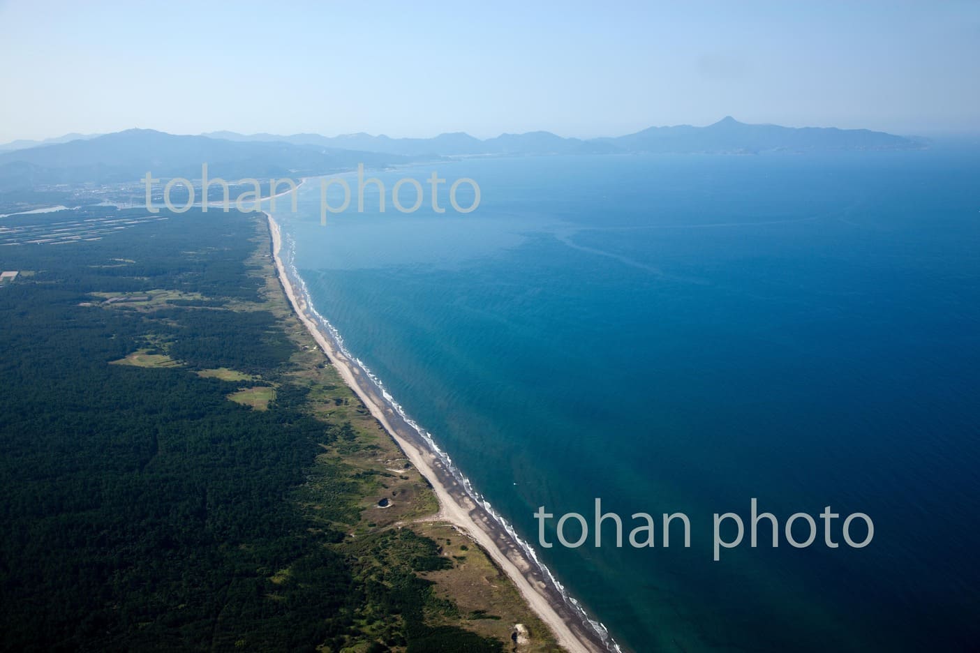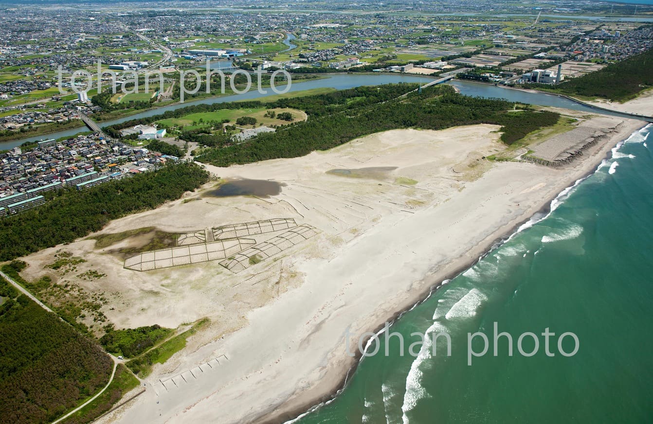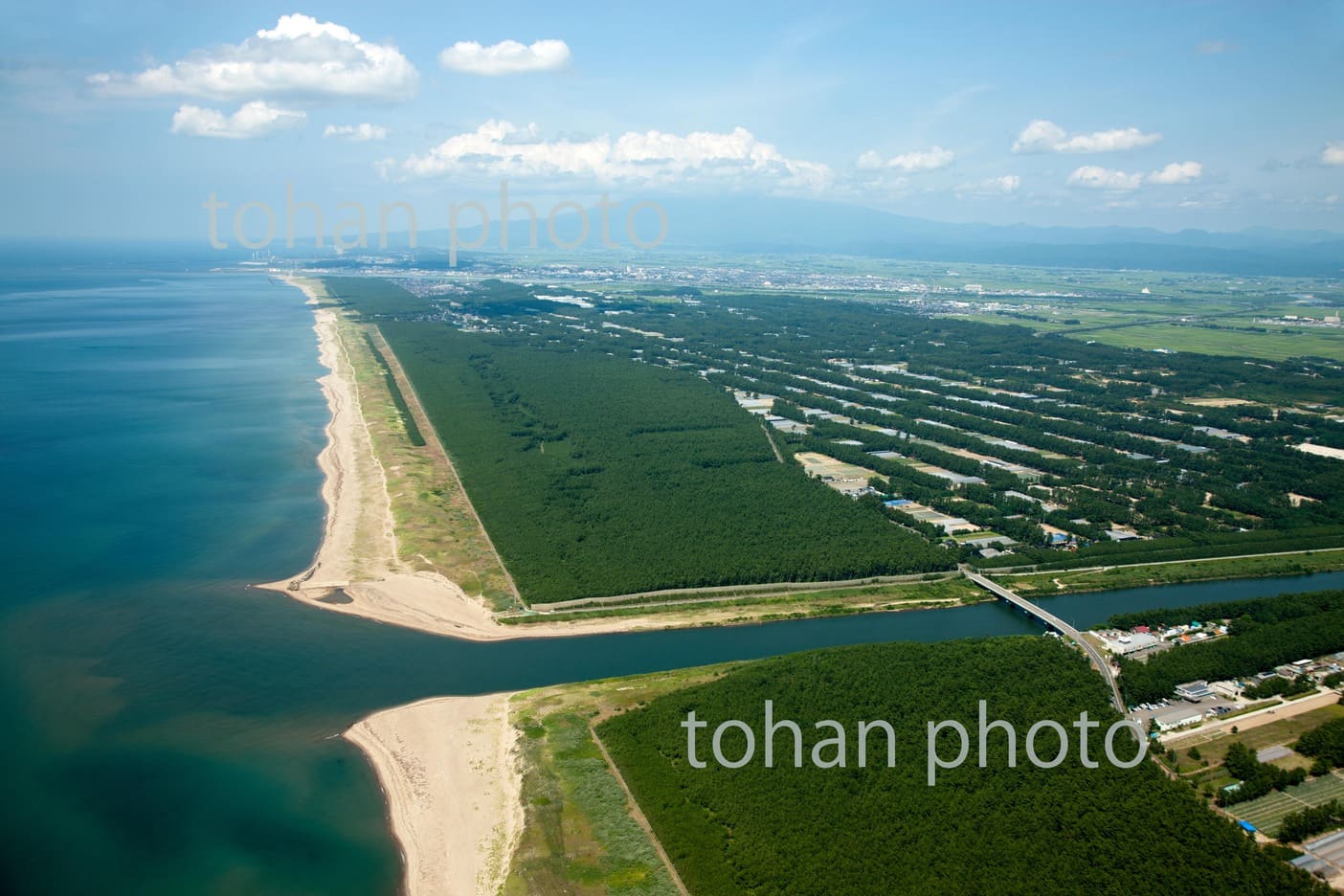 view-赤川河口より庄内平野の防風林と庄内砂丘-山形