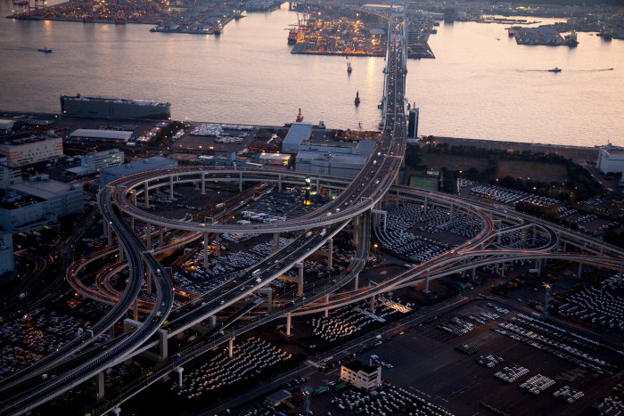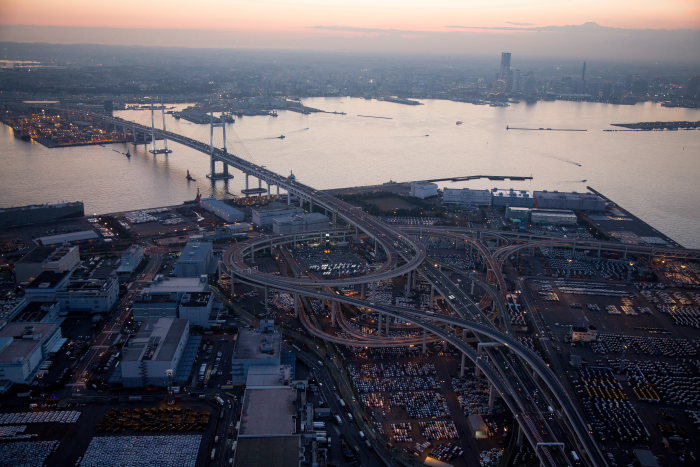 夕景の大黒JCTより横浜港(横浜市鶴見区)