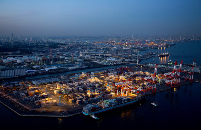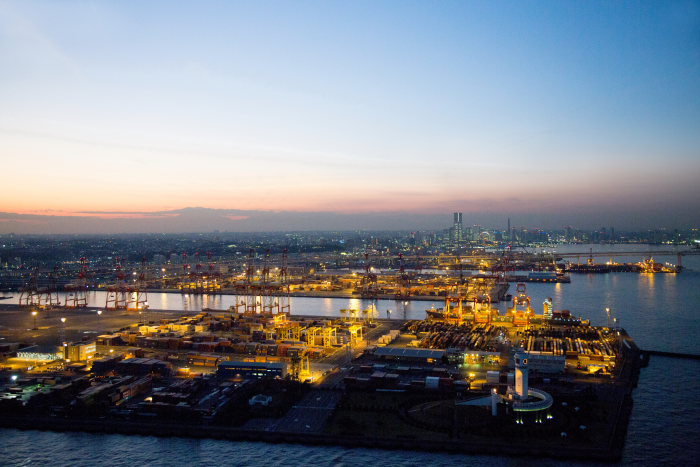 夕景の本牧ふ頭より横浜の街並み(横浜市中区)