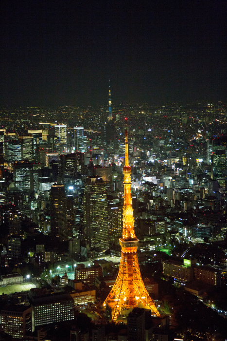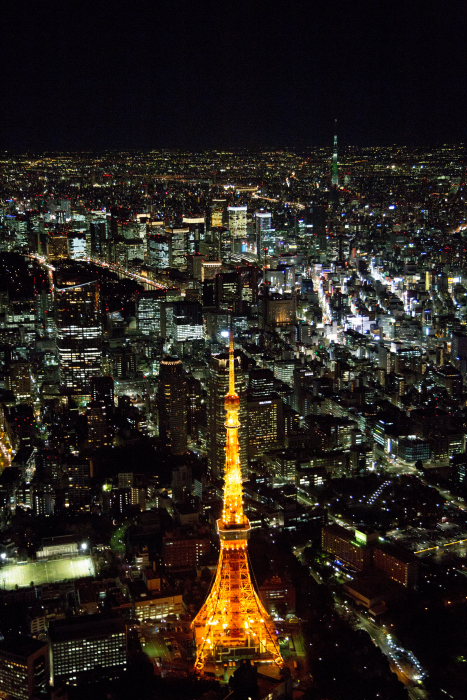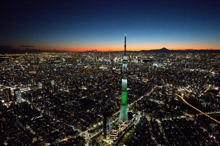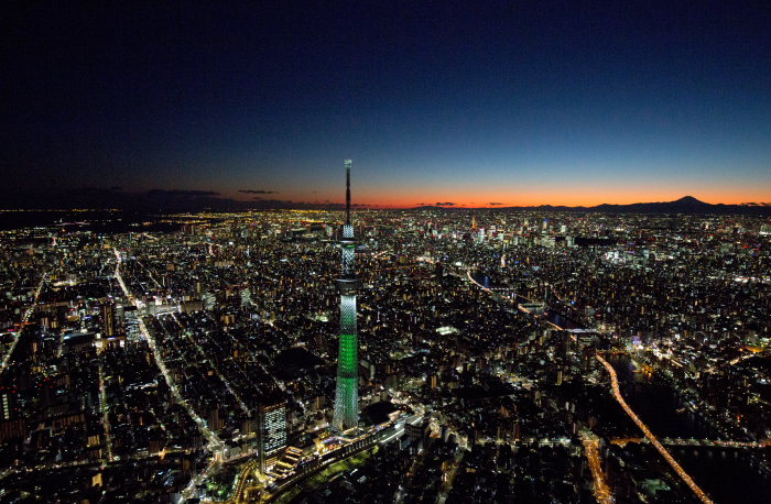 夜の東京スカイツリーより東京の街並みと富士山(東京都墨田区)