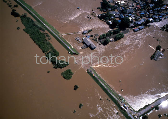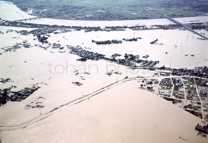 台風での小貝川氾濫市街地洪水-1986,08