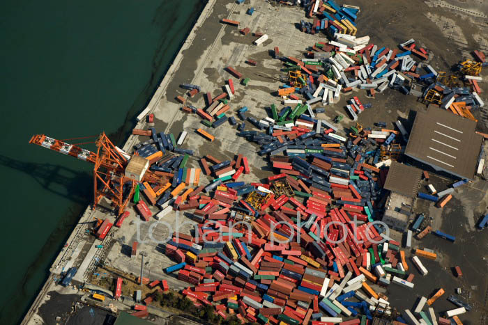 東日本大震災(宮城県仙台港崩れたコンテナ群)2011,03,11