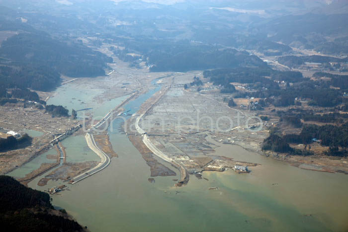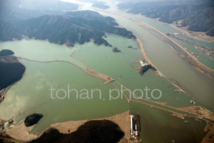 東日本大震災北上川,北上町付近(宮城県石巻市)20110311