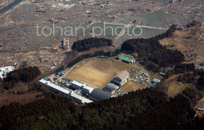 東日本大震災(志津川高校のSOSマーク)宮城県本吉郡南三陸町