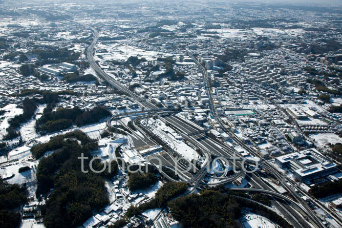 雪の影響で通行止めの第三京浜道路(都筑IC)付近-20130115