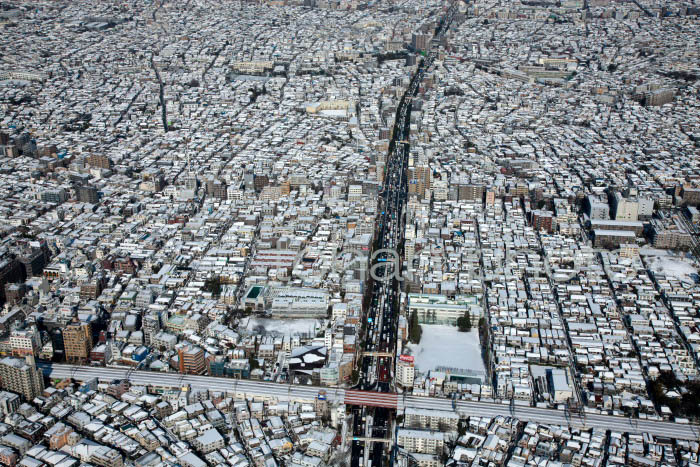 雪景色の環七通り(高円寺)周辺-20130115