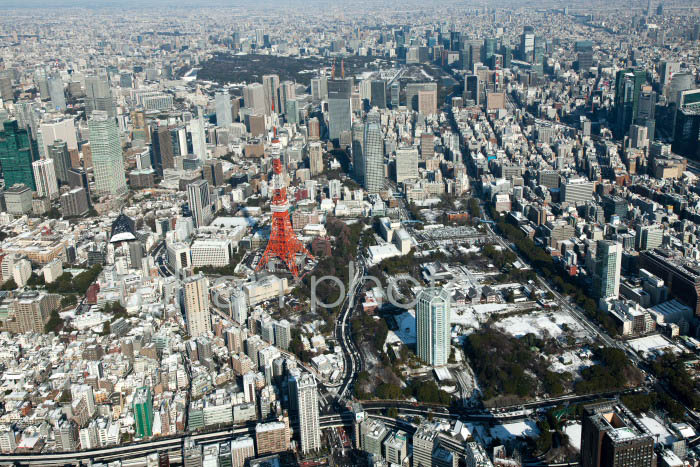 雪景色の芝公園,東京タワー周辺-20130115