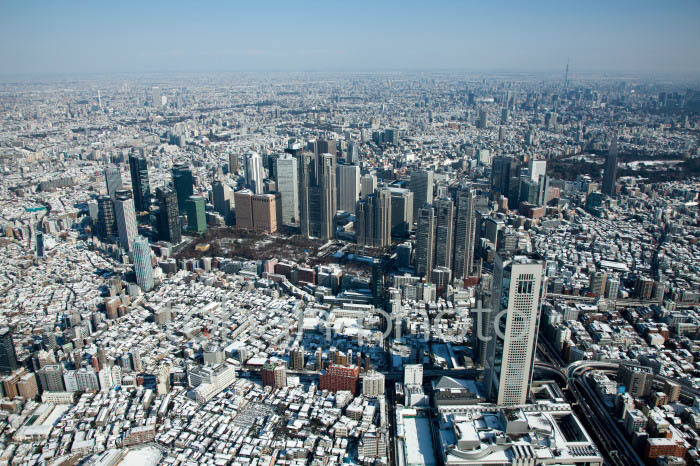 雪景色の初台と西新宿高層ビル群周辺-20130115