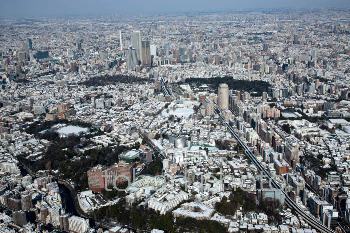 雪景色の四谷周辺より新宿方面(東京都新宿区)-201301