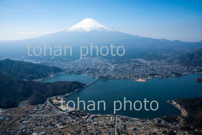 河口湖(桜満開の八木崎公園と河口湖大橋)周辺より富士山(2018/4)